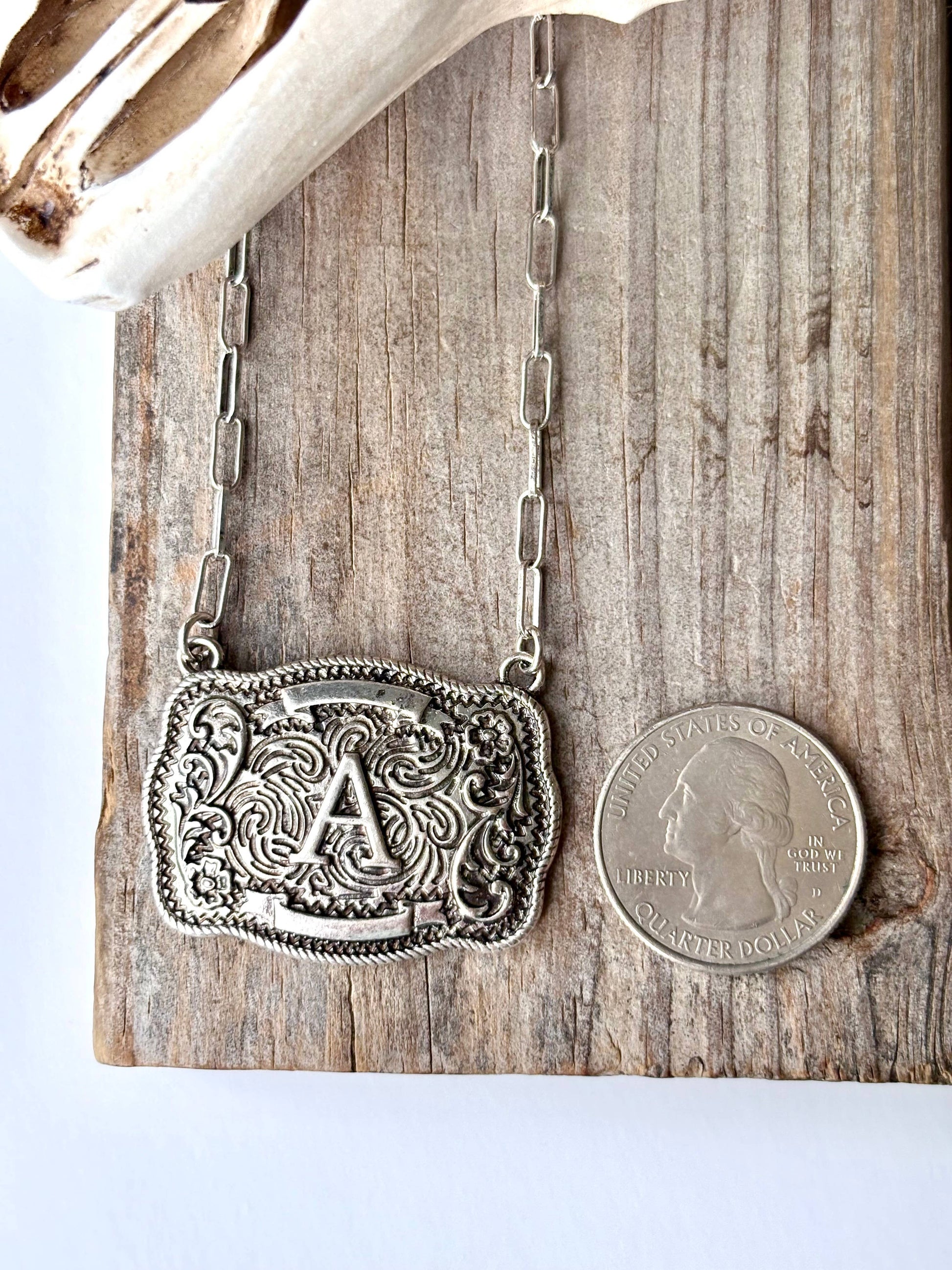 Western Initial Buckle Pendant Necklace
